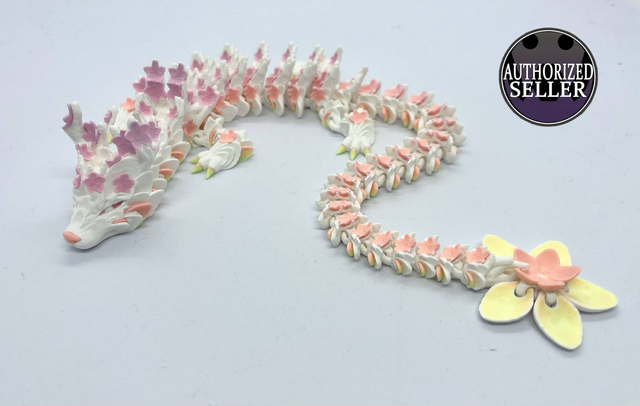 3D-tulostettu nivelletty pitkä lohikäärme fidget-leluksi. Värisävyt voivat poiketa kuvista. Valmistettu PLA-muovista.