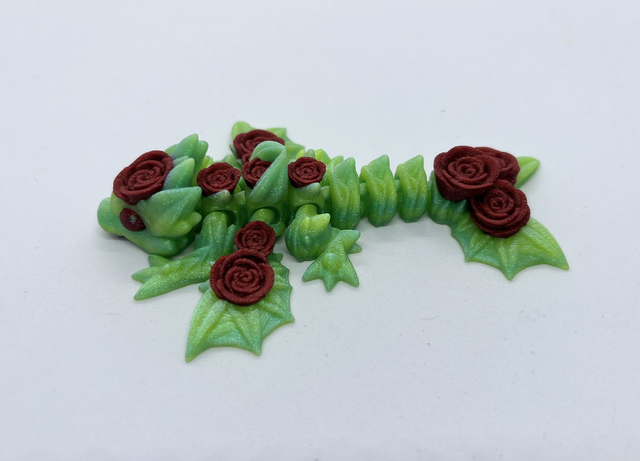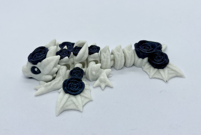 Sekä lohikäärmeen vartalo että ruusut on printattu kimaltelevalla glitterfilamentilla!