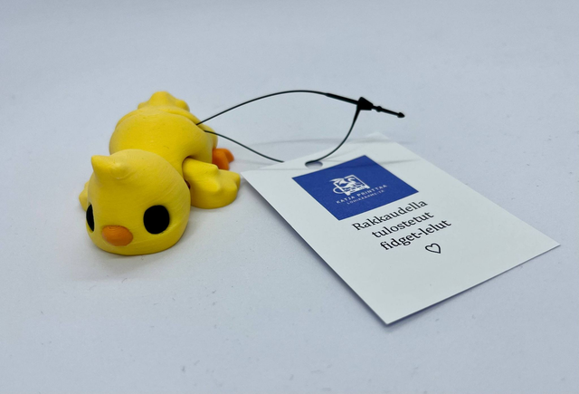 3D-tulostettu nivelletty tipu fidget-leluksi. Värisävyt voivat poiketa kuvista. Valmistettu PLA-muovista.