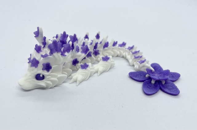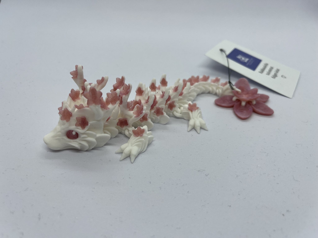 3D-tulostettu nivelletty vauvalohikäärme fidget-leluksi. Värisävyt voivat poiketa kuvista. Valmistettu PLA-muovista.