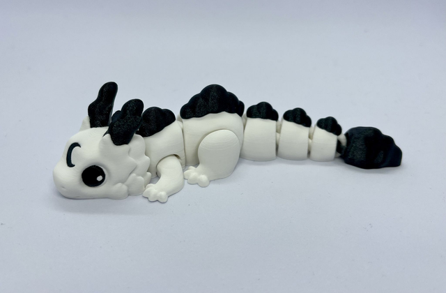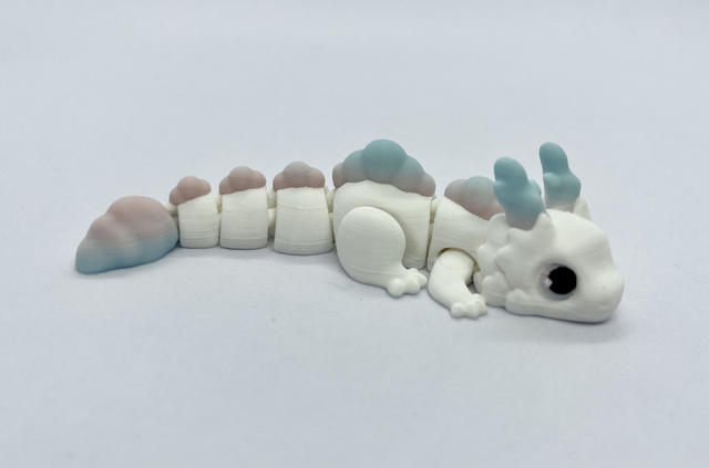 3D-tulostettu nivelletty pikkulohikäärme fidget-leluksi. Värisävyt voivat poiketa kuvista. Valmistettu PLA-muovista.