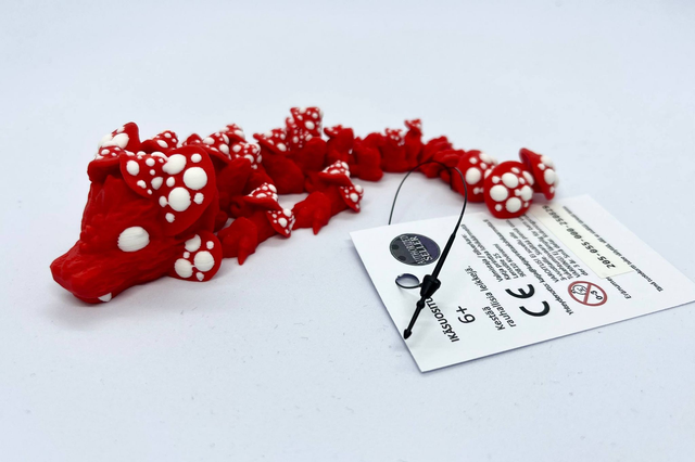 Tätä sienilohikäärmevauvaa on tällä hetkellä saatavilla vain punavalkoisena. Muita värivaihtoehtoja lisätään kauppaan myöhemmin.