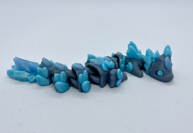 3D-tulostettu nivelletty lohikäärme fidget-leluksi. Värisävyt voivat poiketa kuvista. Valmistettu PLA-muovista.