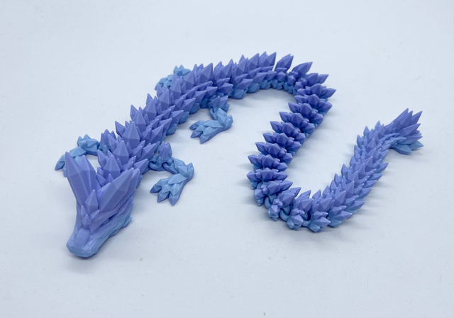 3D-tulostettu nivelletty pitkä lohikäärme fidget-leluksi. Värisävyt voivat poiketa kuvista. Valmistettu PLA-muovista.