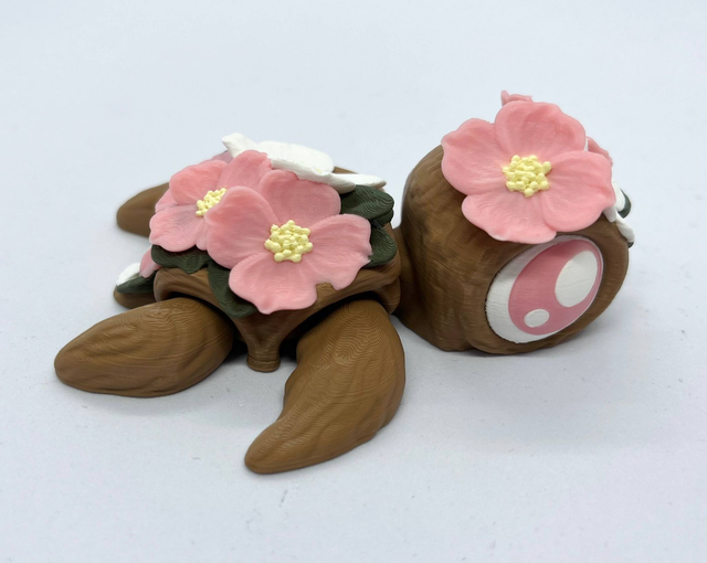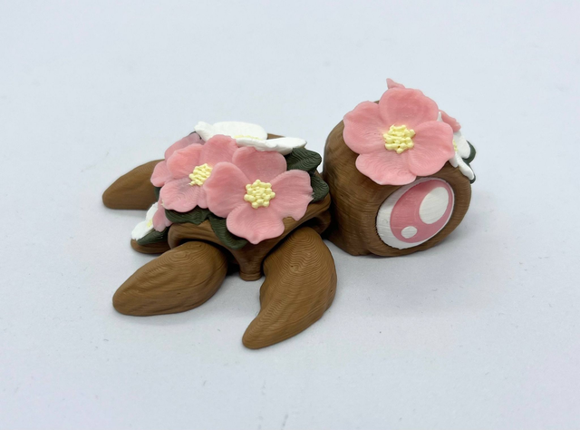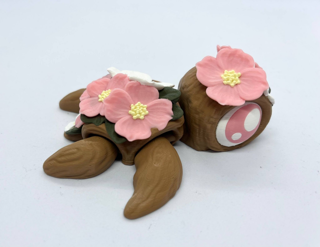 3D-tulostettu nivelletty kilpikonna fidget-leluksi. Värisävyt voivat poiketa kuvista. Valmistettu PLA-muovista.