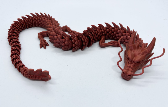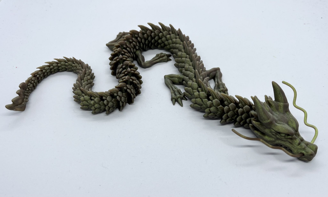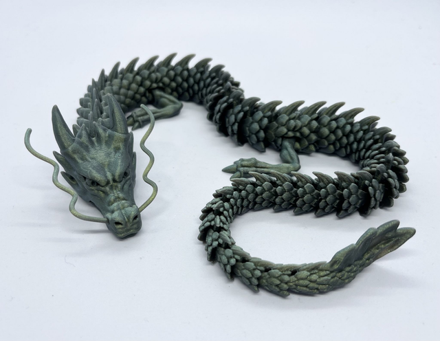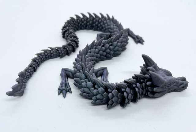 McGybeerin OG-vötkölohikäärme tulostettuna glitterfilamentista. Materiaali on erittäin kestävä, joskaan ei silti tuhoutumaton.