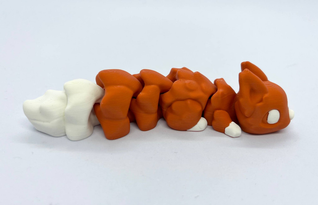 3D-tulostettu nivelletty orava fidget-leluksi. Värisävyt voivat poiketa kuvista. Valmistettu PLA-muovista.