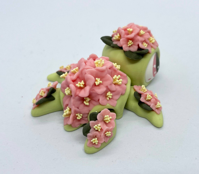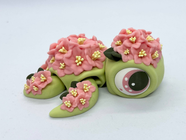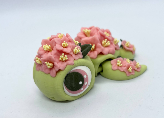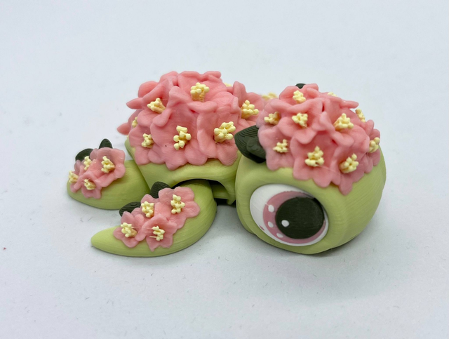 3D-tulostettu nivelletty kilpikonna fidget-leluksi. Värisävyt voivat poiketa kuvista. Valmistettu PLA-muovista.