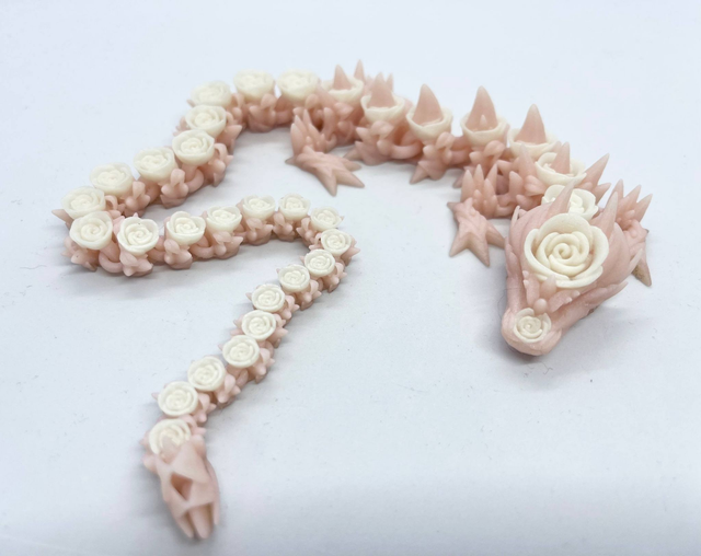 3D-tulostettu nivelletty pitkä lohikäärme fidget-leluksi. Värisävyt voivat poiketa kuvista. Valmistettu PLA-muovista.