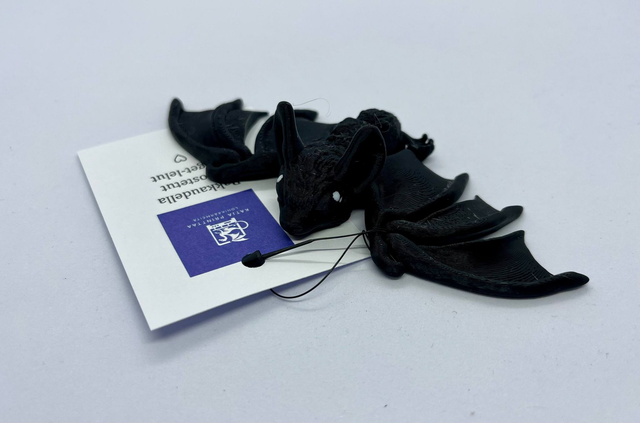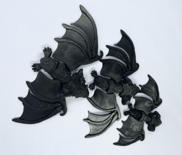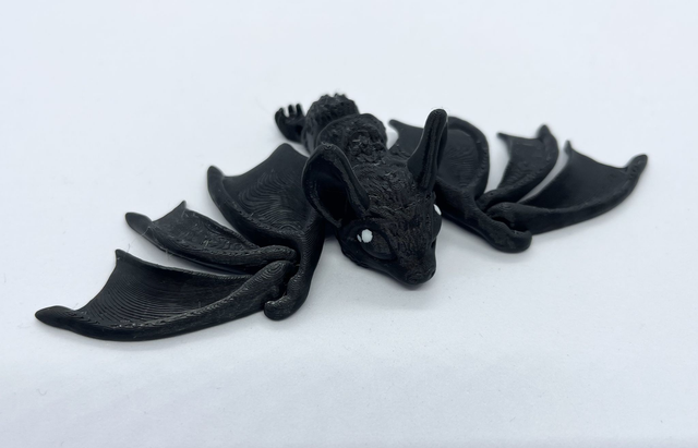 3D-tulostettu nivelletty lepakko fidget-leluksi. Värisävyt voivat poiketa kuvista. Valmistettu PLA-muovista.
