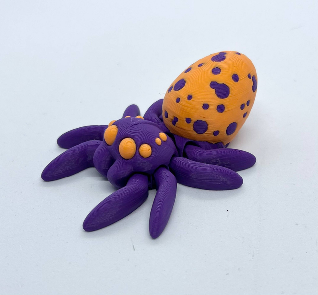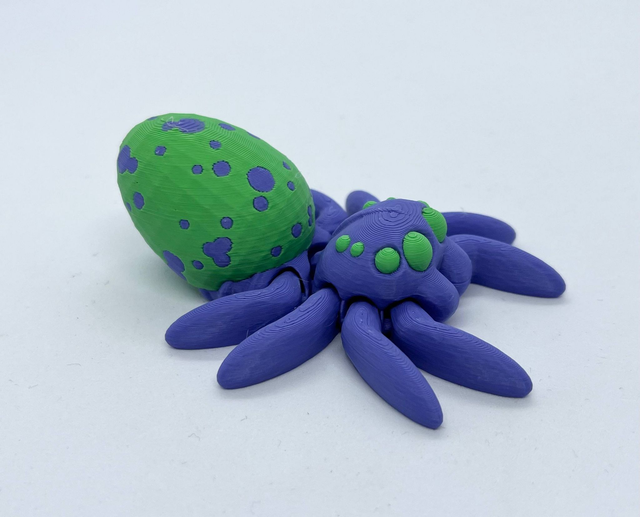 3D-tulostettu nivelletty hämähäkki fidget-leluksi. Värisävyt voivat poiketa kuvista. Valmistettu PLA-muovista.
