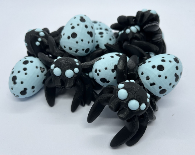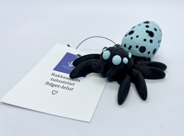 3D-tulostettu nivelletty hämähäkki fidget-leluksi. Värisävyt voivat poiketa kuvista. Valmistettu PLA-muovista.