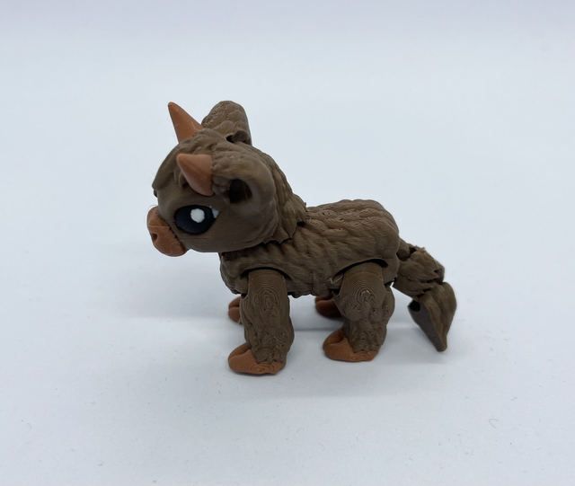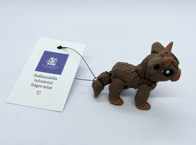 3D-tulostettu nivelletty lehmä fidget-leluksi. Värisävyt voivat poiketa kuvista. Valmistettu PLA-muovista.